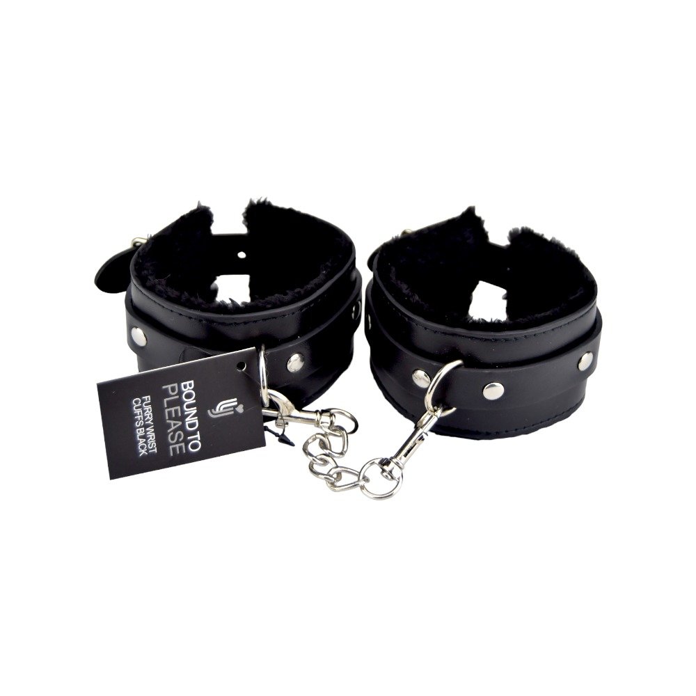 Bound to Please Furry Plush Wrist Cuffs Black