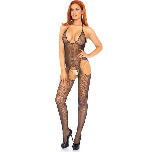 Seamless Fishnet Halter Suspender Bodystocking